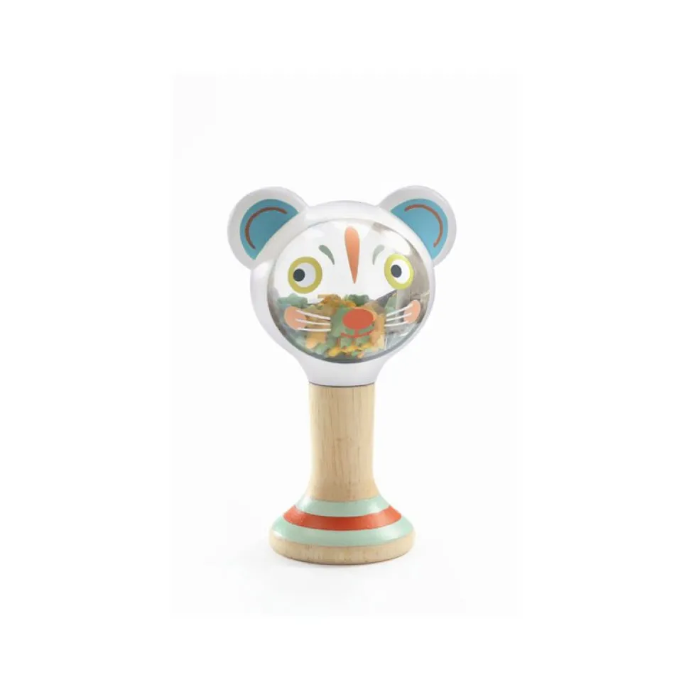 Amusez-vous avec cet adorable hochet maracas : BabyMaraki !Un jouet d’éveil très original que votre petit garçon ou votre petite fille prendra facilement dans sa main.Cet adorable hochet en bois en forme de maracas renferme dans sa tête transparente des formes multicolores. Lorsque votre tout-petit secoue son hochet, il produit un son de maracas. Un jouet d’éveil parfait pour les bébés !Dimensions : 6,7 x 10,7 cmLe hochet est un jouet polyvalent qui permet d’éveiller plusieurs sens de votre bébé. C’est en plus un jouet avec lequel votre tout-petit pourra jouer pendant toute sa première année. Ils sont conçus comme de vrais jouets destinés à l’éveil des sens et de la motricité de bébé de 0 à 12 mois.