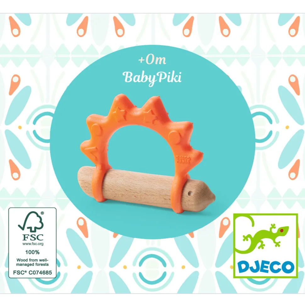 Découvrez la collection BABY BLANC avec le jeu BabyPiki de la marque Djeco. BabyPiki est un adorable anneau de dentition en forme de hérisson, conçu spécialement pour les tout-petits dès la naissance. Fabriqué en silicone souple avec un corps en bois naturel, il allie douceur et robustesse pour soulager les gencives tout en éveillant les sens. Grâce à son grand diamètre, il est facile à saisir à deux mains, même pour les plus jeunes. Sa matière élastique lui permet de s’étirer tout en reprenant toujours sa forme initiale, et sa base plate lui permet de tenir debout. Ce jouet a été développé en collaboration avec une équipe pluridisciplinaire composée d’un neuropsychologue, d’un pédiatre et d’une orthophoniste, pour garantir un éveil en toute sécurité et adapté aux besoins du bébé.
