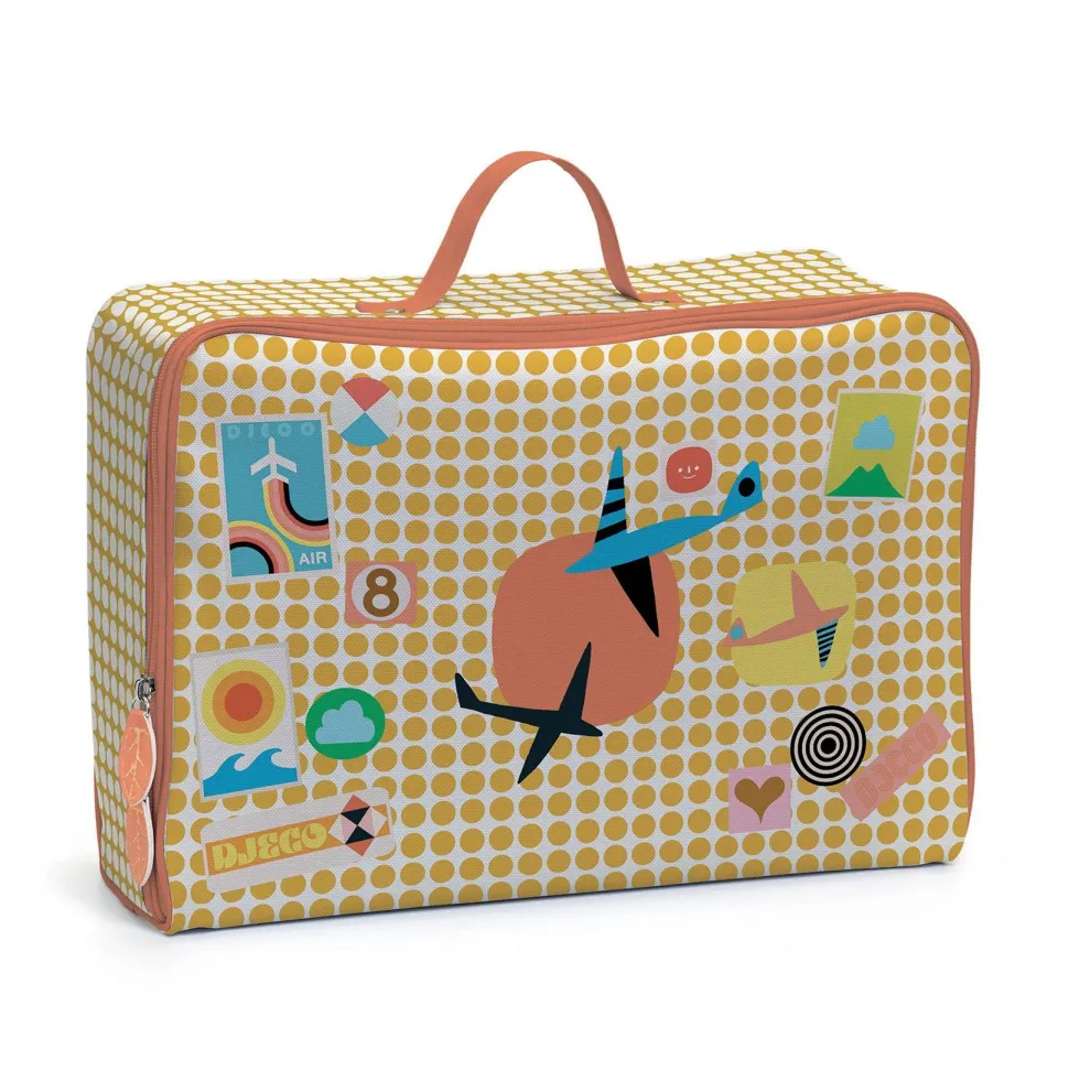 Découvrez la gamme de BAGAGERIE avec la collection LITTLE BIG ROOM et le sac Graphique de la marque Djeco. Cette valise, aux illustrations très graphiques et modernes, est idéale pour emporter les affaires de l’enfant lors des vacances ou pour un week-end. Elle est fabriquée à partir de toile enduite, ce qui lui confère des propriétés imperméables pour protéger les effets personnels contre l’humidité. L’intérieur de la valise est composé d’un grand compartiment textile permettant un rangement facile et organisé. Sa structure rigide assure la protection des affaires de l’enfant pendant le transport. Légère, la valise est facile à transporter grâce à sa poignée, idéale pour les petites mains. La fermeture éclair à glissière bidirectionnelle est pratique et est élégamment ornée d’un joli médaillon, apportant une touche raffinée à l’ensemble. L’extérieur est fabriqué en 100 % coton plastifié, tandis que l’intérieur est composé de 80 % coton et 20 % polyester. Ce produit nécessite uniquement un lavage en surface pour son entretien.