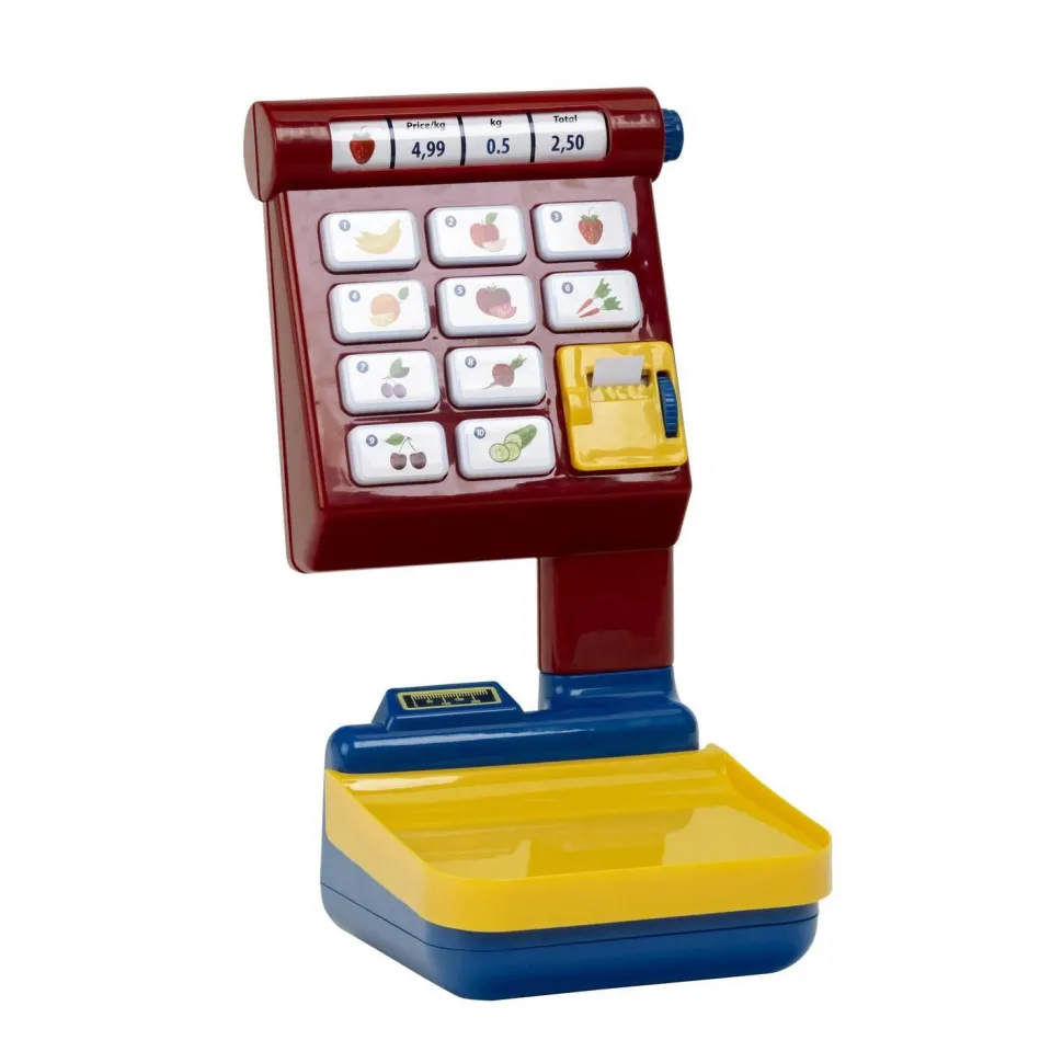 Balance avec indicateur lumineux.Apprendre à peser devient facile grâce à cette splendide balance.Vendu sans les fruits et légumes.Fonctionne avec 2 piles R6 non fournies.Dimensions : 17 x 18.5 x 30.5 cm.