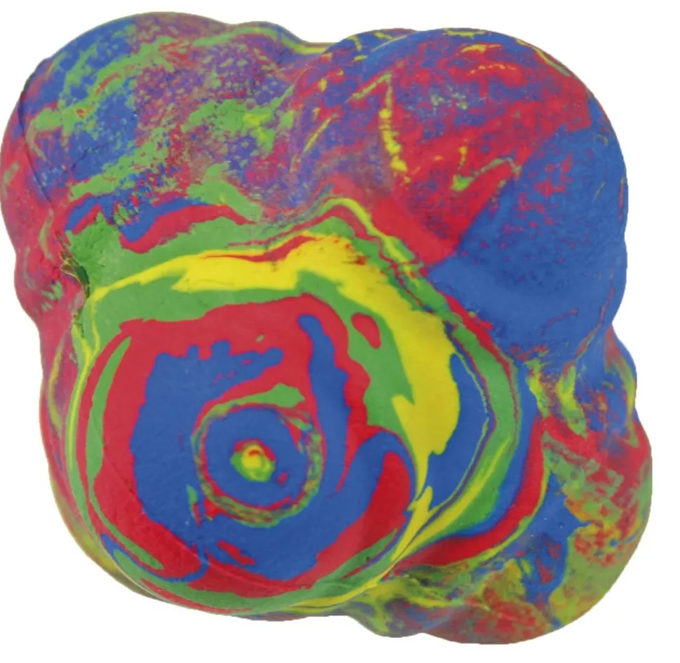 … Jeu. Grâce à sa forme bosselée, la balle rebondit sur le mur ou le sol dans une direction imprévisible. Il faut une réaction rapide et une certaine habileté pour la rattraper.