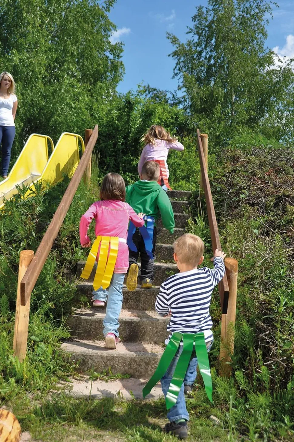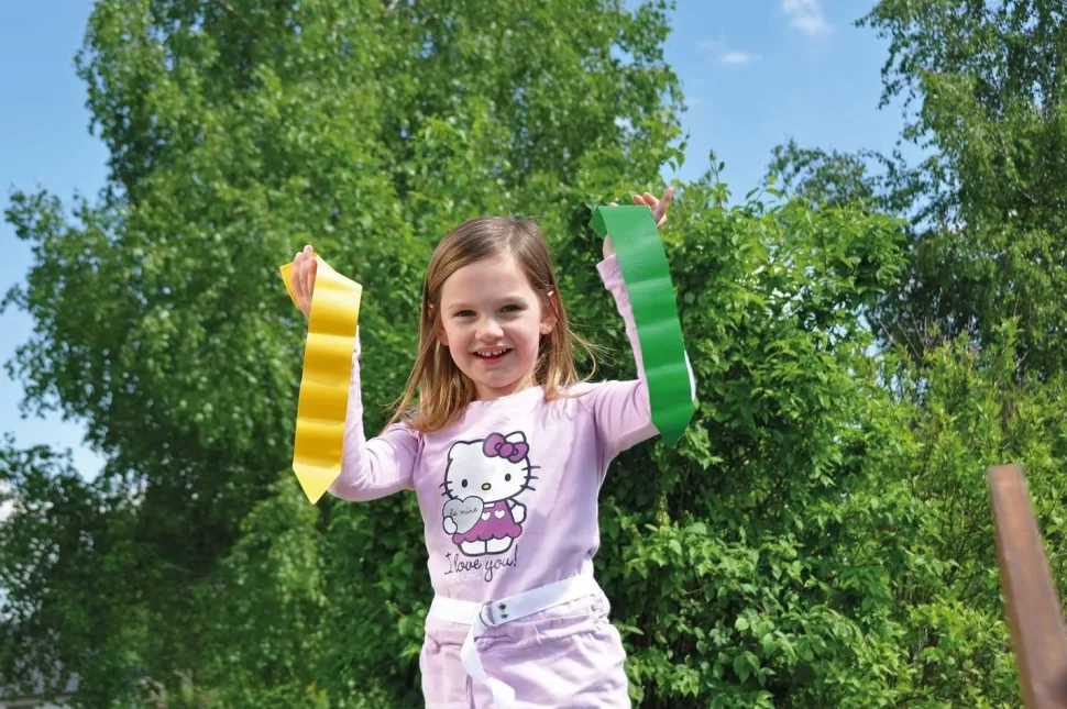 Jeux de rattrapage, relais, jeux de piste et courses… Le but est d’attraper soit le plus de rubans auto-agrippants colorés possible, soit tous les rubans de la même couleur. Ce jeu propose de nombreuses variantes. Réutilisable et sûr grâce au système auto-agrippant. Chaque joueur attache l’une des 4 ceintures en nylon rouge, jaune, verte et bleue autour de ses hanches. Matériau : ruban détachable en toile bâche. Dimensions : ruban détachable : 38 x 5 cm.