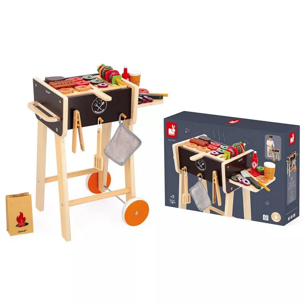 Sentez-vous la bonne odeur de saucisses grillées ? Les repas s’annoncent festifs avec ce magnifique jouet barbecue en bois, plus vrai que nature de la marque Janod !