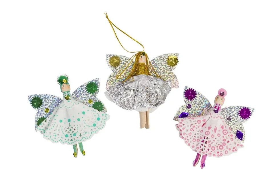 … et divers matériaux pour réaliser 10 poupées anges/fées. Ce kit est idéal pour un anniversaire créatif ou pour Noël, pour réaliser des poupées anges à suspendre au sapin.