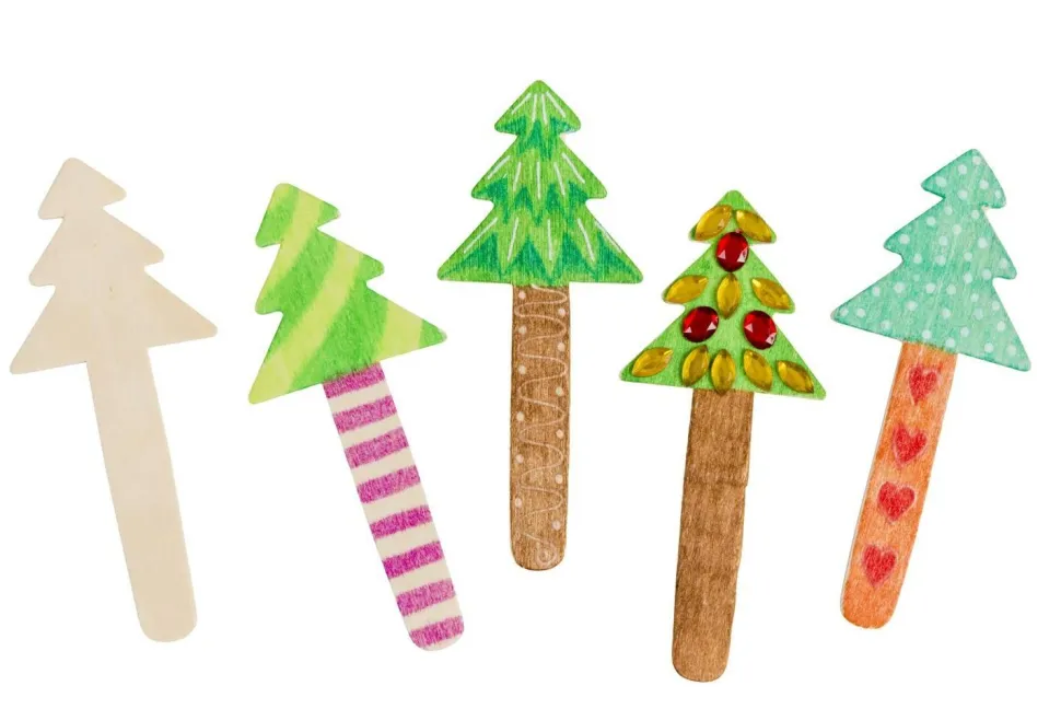 10 bâtonnets en bois en forme de sapin
