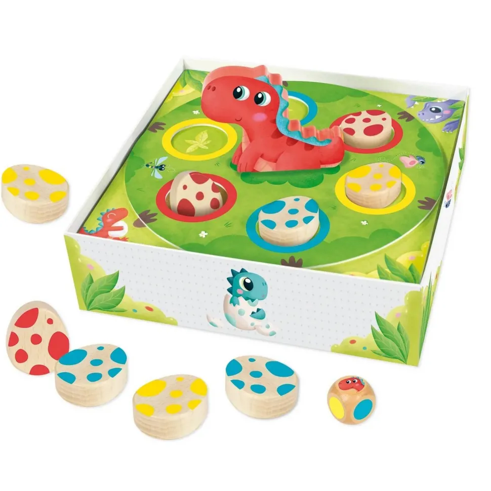 Ce jeu est parfait pour de petits groupes de joueurs et garantit du plaisir et un sentiment de réussite lorsque les enfants aident Maman Dino à retrouver ses œufs.