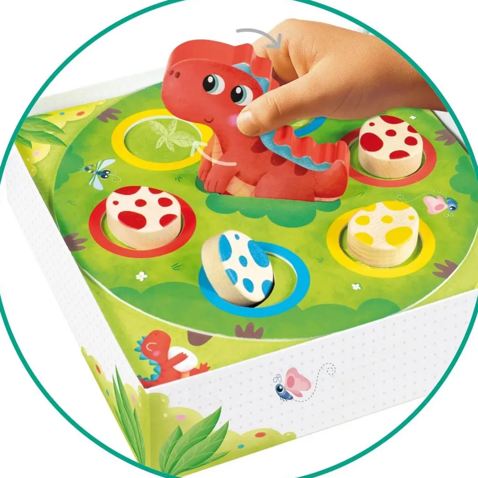 Contenu : Avec 1 plateau tournant, 1 Maman Dino, 9 œufs et 1 dé en bois.
