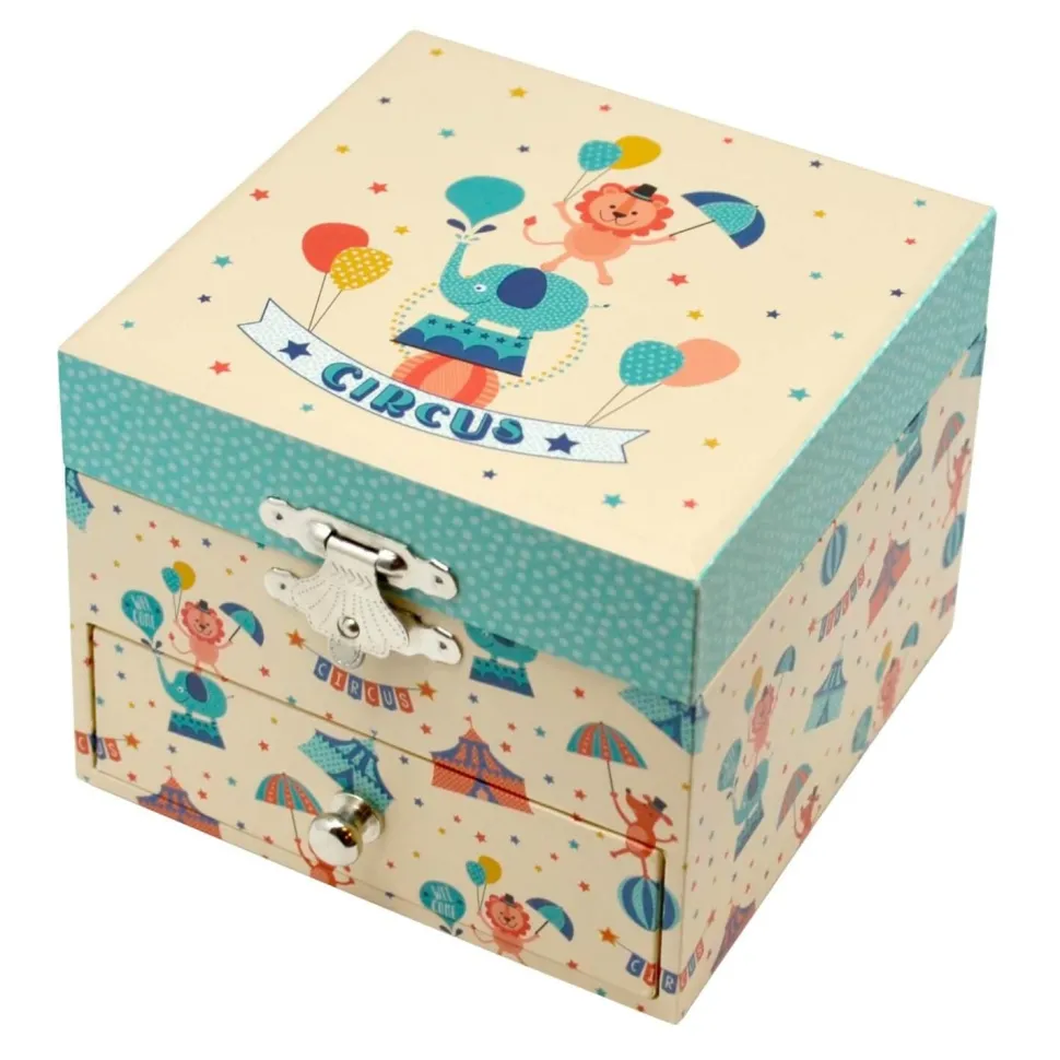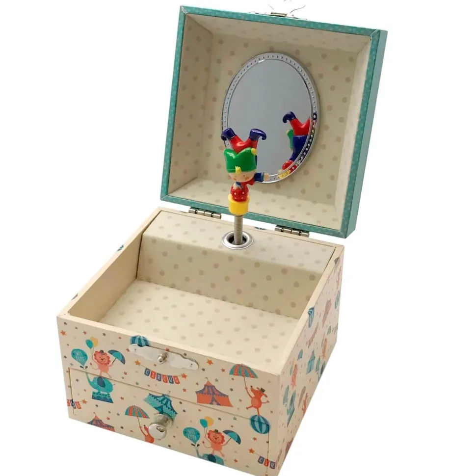 UNE BOÎTE MUSICALE POUR RANGER SES TRESORS : Cette boîte à musique en forme de cube et disposant d’un tiroir émerveillera l’enfant qui y rangera ses trésors. Actionnez la manivelle et la figurine Acrobate s’anime comme par magie au son de la musique !