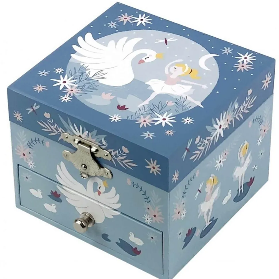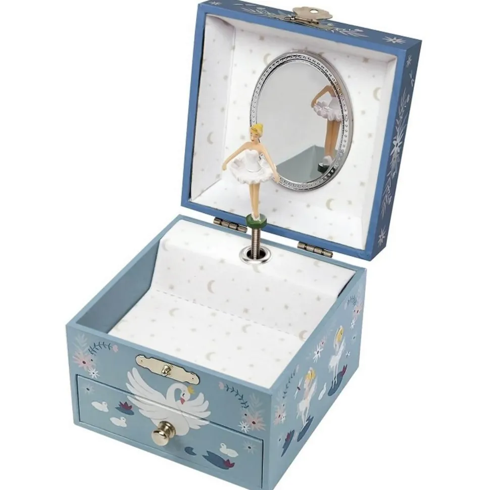 Cette boîte à musique en forme de cube et disposant d’un tiroir émerveillera l’enfant qui y rangera ses trésors. Actionnez la manivelle et la figurine danseuse s’anime comme par magie au son de la musique !