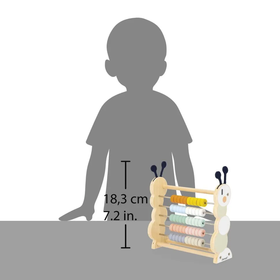 Adapté aux tout-petits dès l’âge de 18 mois, ce boulier en bois s’adapte aux premières découvertes comme aux premiers apprentissages pour grandir avec votre enfant. D’abord, bébé manipule les pièces de son jouet d’éveil de gauche à droite et découvre les différentes nuances de couleurs. 10 coloris sont à découvrir, de l’orange au rose, en passant par le bleu et le vert. Une fois plus grand, il utilisera son boulier chenille pour apprendre à compter, mais aussi pour réaliser des opérations simples comme les additions ou les soustractions. C’est aussi un jeu éducatif idéal quand on apprend à différencier les dizaines des unités. Vous l’aurez compris : un boulier est un chouette moyen de stimuler la motricité fine des petits et de renforcer l’apprentissage des nombres des plus grands.
