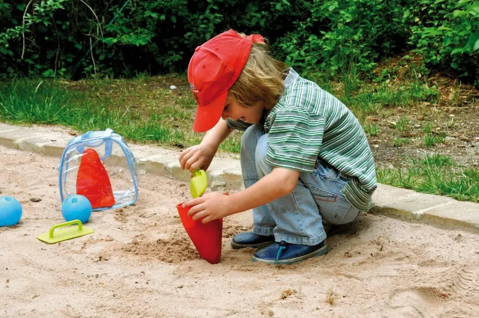 Creuser, construire, jouer au bowling… Avec ce set, vous avez tout ce qu’il vous faut pour le bowling : à l’aide de la petite pelle, remplissez les moules de sable et installez-les comme des quilles. La truelle assure une surface de jeu plane. Remplissez ensuite les boules de sable ou d’eau, et le plaisir du bowling peut commencer. Contenu : 6 pièces. Matériau : matière synthétique. Dimensions : boule Ø 8 cm ; quille Ø 10,5 cm, hauteur 16,5 cm. Âge : 3 ans.