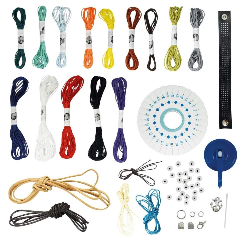 Nombreux accessoires : fil de coton, corde cirée, perles, breloques ou encore bracelet en simili cuir.