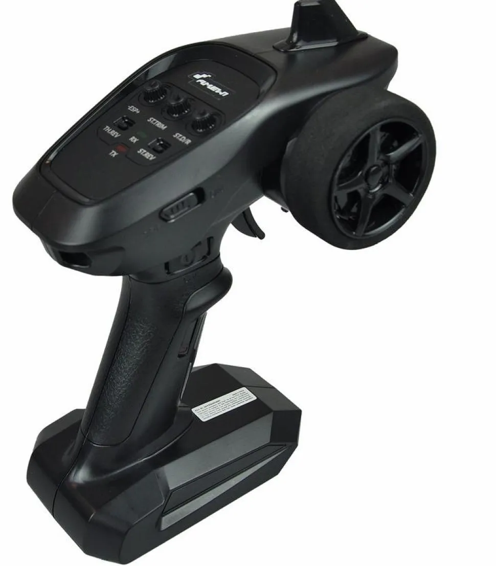 La télécommande sensible de 2,4 GHz donne une sensation de conduite très directe. Le servo de direction rapide et puissant assure également un maniement précis et la puissante transmission à 4 roues motrices, associée à la grande batterie (7,4 V Li-Ion 1200 mAh), permet de longues durées de conduite à une vitesse de pointe d’environ 30 à 35 km/heure.