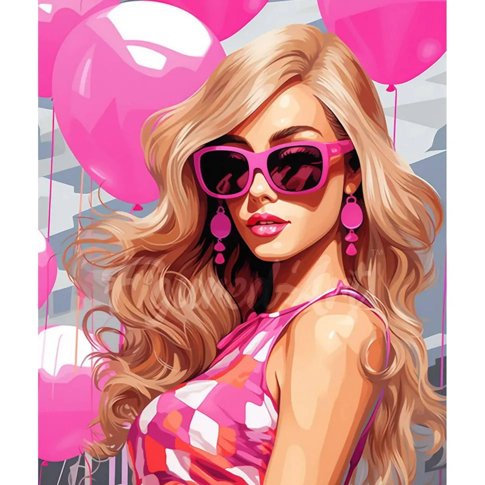 Description du produit : Broderie diamant : Ballons Roses et Diva – toile tendue sur chassis