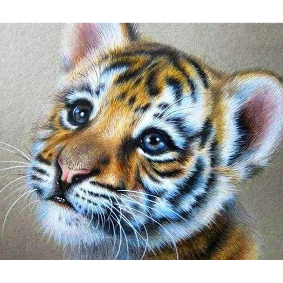 Description du produit : Broderie diamant : Bébé Tigre – sans chassis en bois
