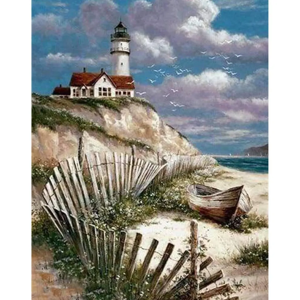 Caractéristiques détaillées : Broderie diamant : Bord de mer – sans chassis en bois