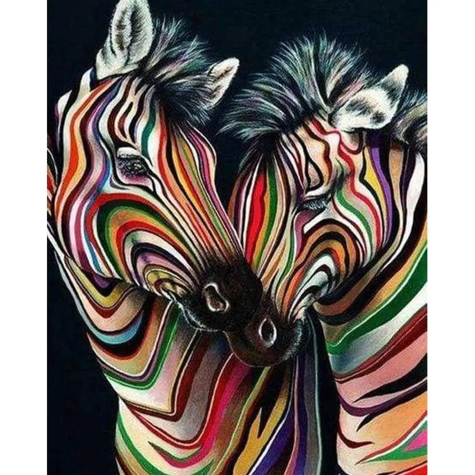 Caractéristiques détaillées : Broderie diamant : Couple de Zèbres – toile tendue sur chassis
