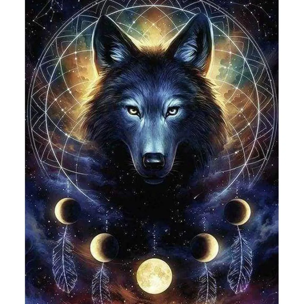 Caractéristiques détaillées : Broderie diamant : Louve Cérémonie indienne – sans chassis en bois