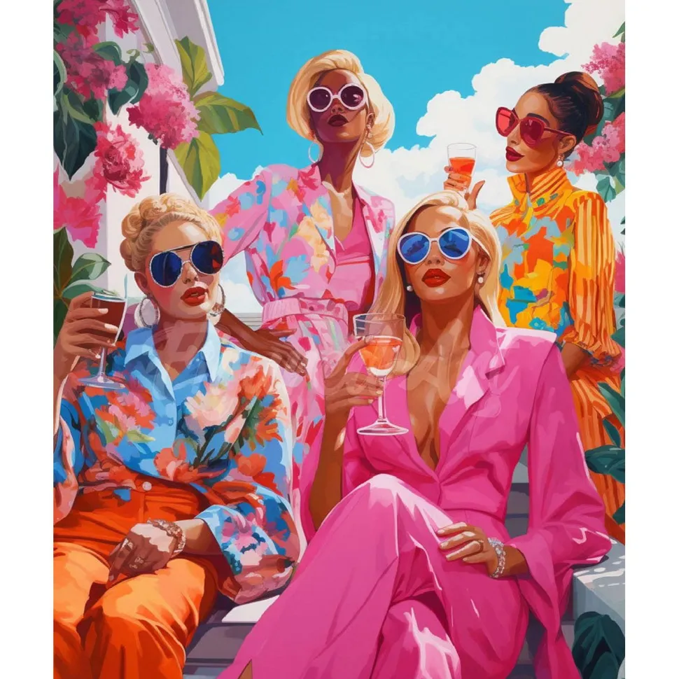 Description du produit : Broderie diamant : Reunion de Divas – sans chassis en bois