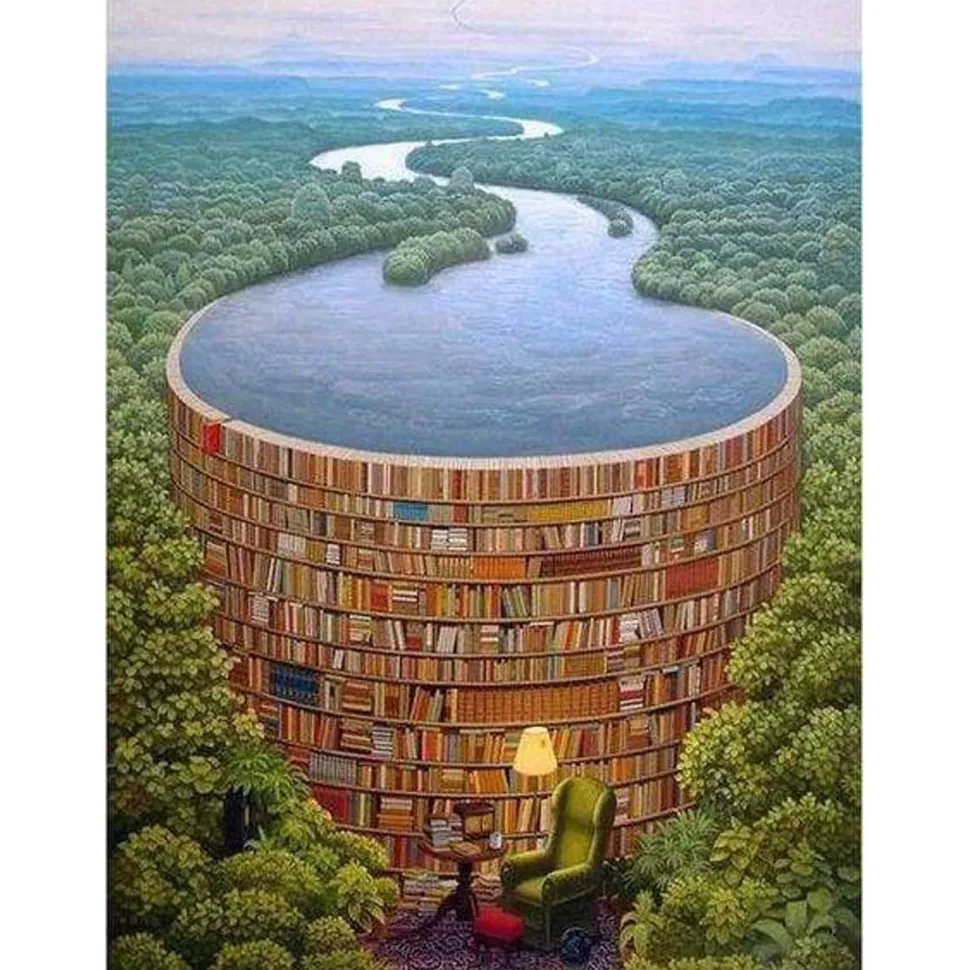 Caractéristiques détaillées : Broderie diamant : Rivière et Bibliothèque – sans chassis en bois