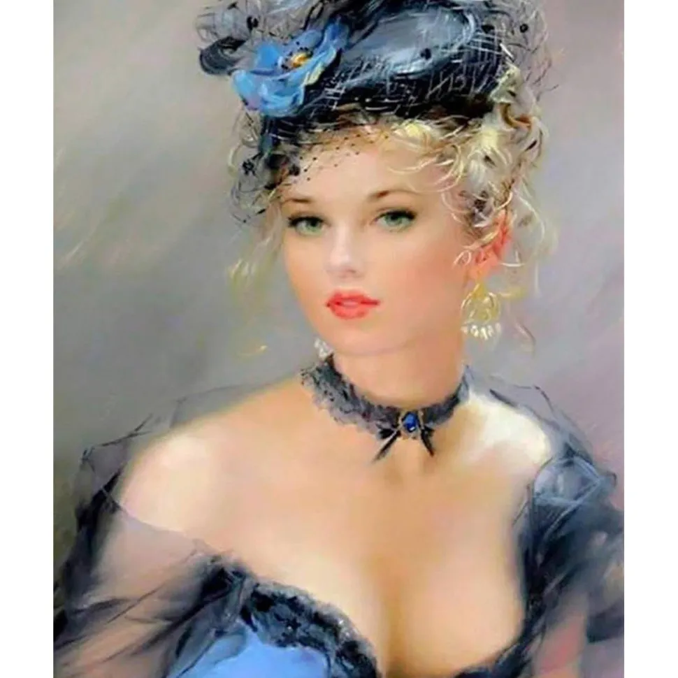 Caractéristiques détaillées : Broderie diamant : Une femme très élégante – sans chassis en bois