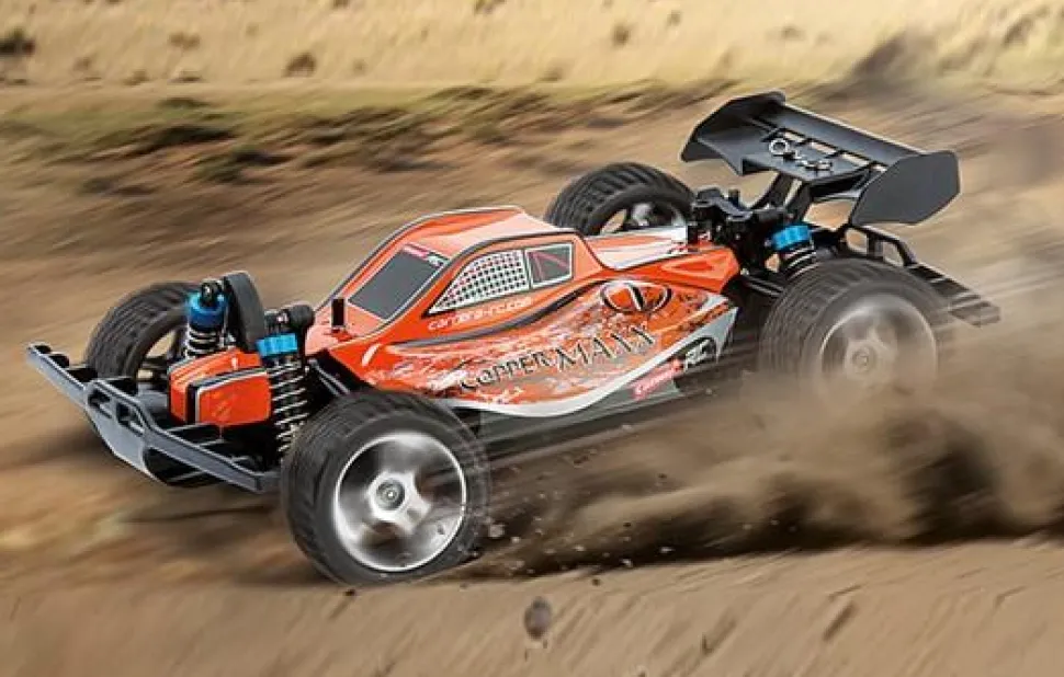 Carrera Go !!!Vous souhaitez devenir le plus grand des pilotes de rallye ? Il est temps pour vous de rentrer dans la course. Le Buggy copper Maxx fera le parfait véhicule pour remporter de nombreuses victoires et vous hisser au sommet du podium !Vroum ! Tenez vous prêt au départ, car le Buggy copper maxx n’attend plus que vous !Votre voiture vous accompagnera dans les circuits les plus fous. Vous pourrez reproduire chez vous des circuits dignes des plus grands rallyes et lancer votre bolide dans la course.- Pour enfants à partir de 6 ans.- Échelle : 1:18.- Super fonctions d’action pour des courses passionnantes.- Radiocommande fournis avec la voiture.