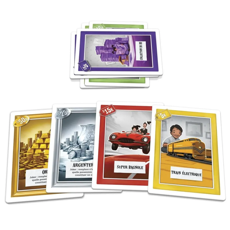 Tente de devenir le premier millionnaire en accumulant des possessions. Empile des sets de cartes devant toi pour accroître ta fortune. Mais attention : le set visible au sommet de ta pile peut être volé. Tu veux garder tes richesses ? Alors, un conseil : Cache ton Ca$h !