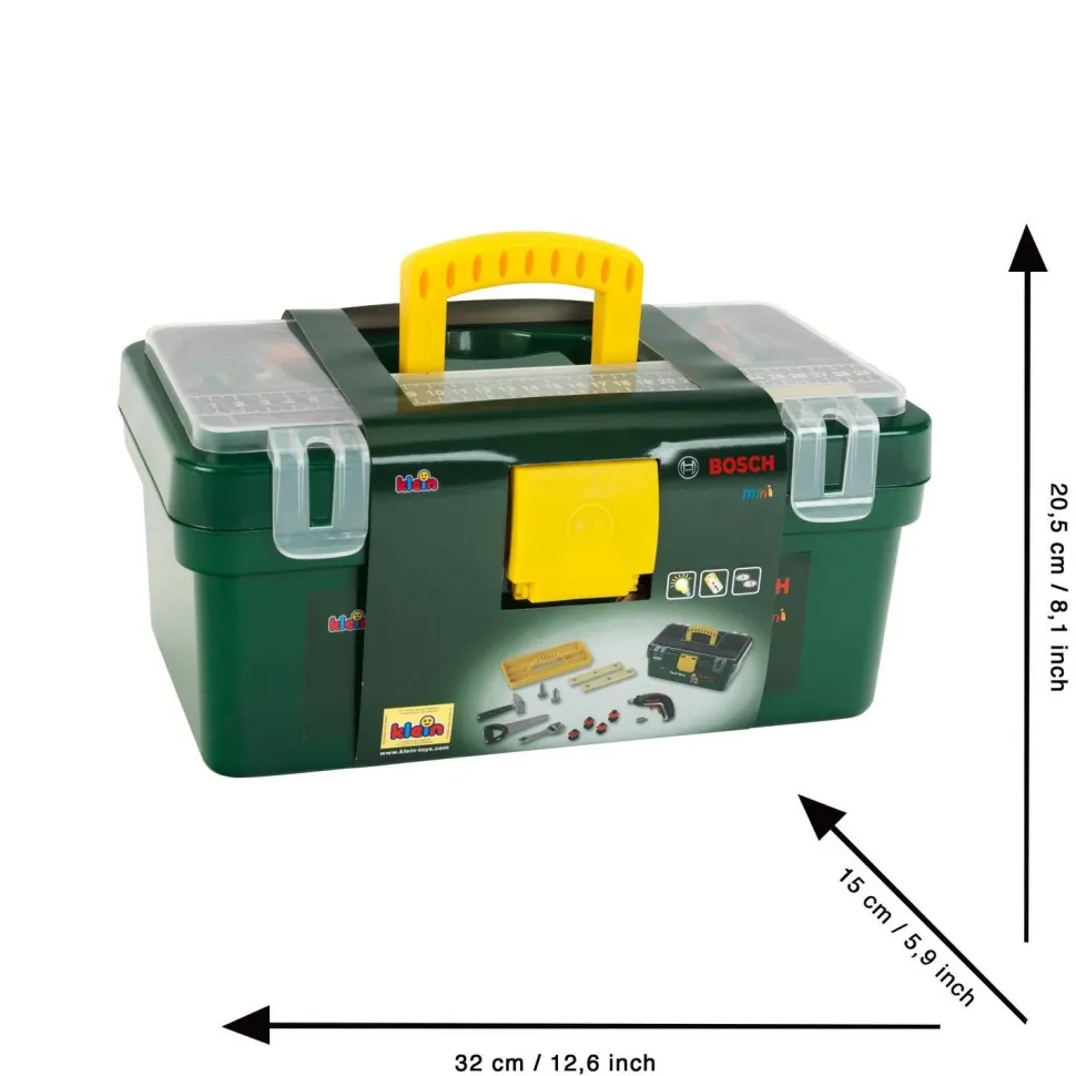 De nouveaux petits bricoleurs en herbe arrivent grâce à la caisse à outils de la célèbre marque Bosch !Dans la peau d’un vrai bricoleur, l’enfant dispose d’une belle mallette contenant de nombreux outils Bosch. Compartimenté, la caisse, facilite le rangement des outils qui se transporte partout grâce à sa poignée.La visseuse Ixolino Bosch fonctionne avec des piles et imite à merveille le modèle Bosch dont elle s’inspire. Pleine d’outils divers pour s’amuser, les enfants vont adorer jouer avec cette mallette et s’imaginer bricoler comme des professionnels.Caractéristiques :- Mallette à Outils Bosch avec Compartiments et Visseuse – Avec 1 visseuse Ixolino- Livré avec divers outils (vis, écrous, plaques, scie, marteau…)- Fonctionne avec piles AAA 1.5 V non incluses- Coloris : VertJeu complet qui permet de développer la curiosité, l’imagination, la créativité et donc l’épanouissement personnel de l’enfant.
