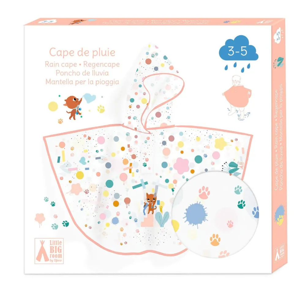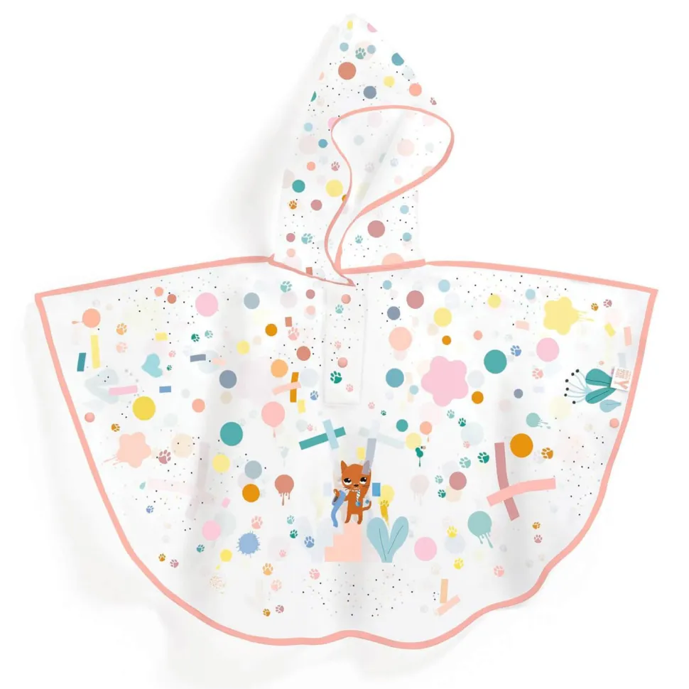 C’est parti pour une joyeuse balade sous la pluie avec cette cape de pluie avec capuche, chic et pratique, de la marque Djeco.