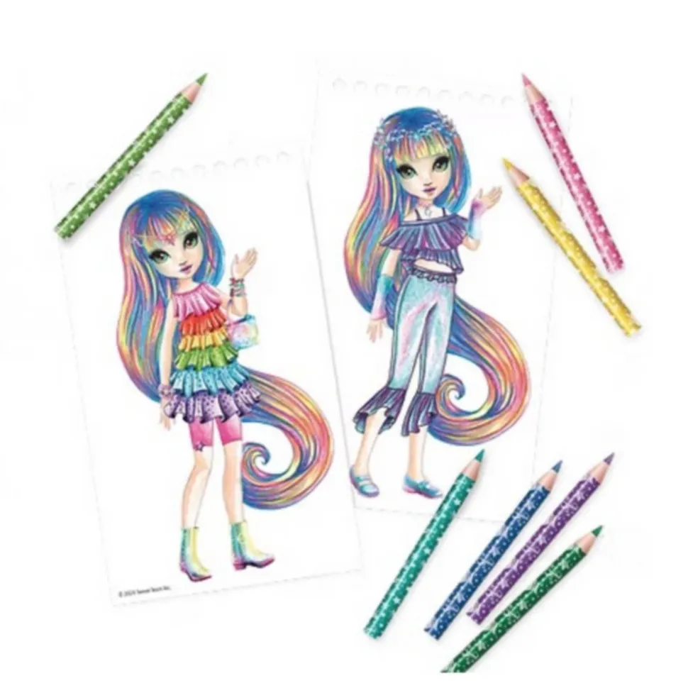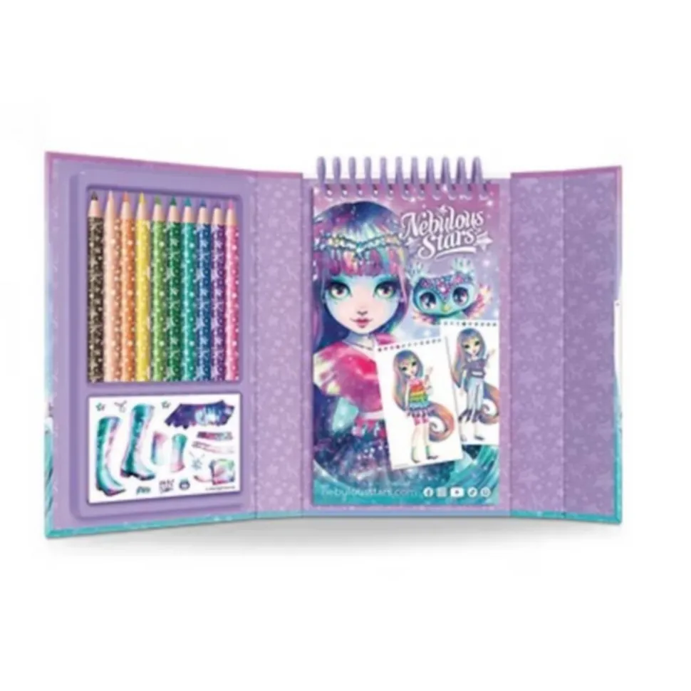 Contenu : 20 pages à dessiner, 28 pochoirs, 100 autocollants, 10 crayons de couleur et instructions en couleurs.