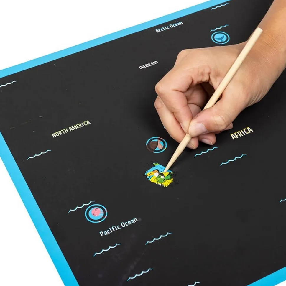 Caractéristiques détaillées : Carte des animaux du monde à gratter Scratch Art