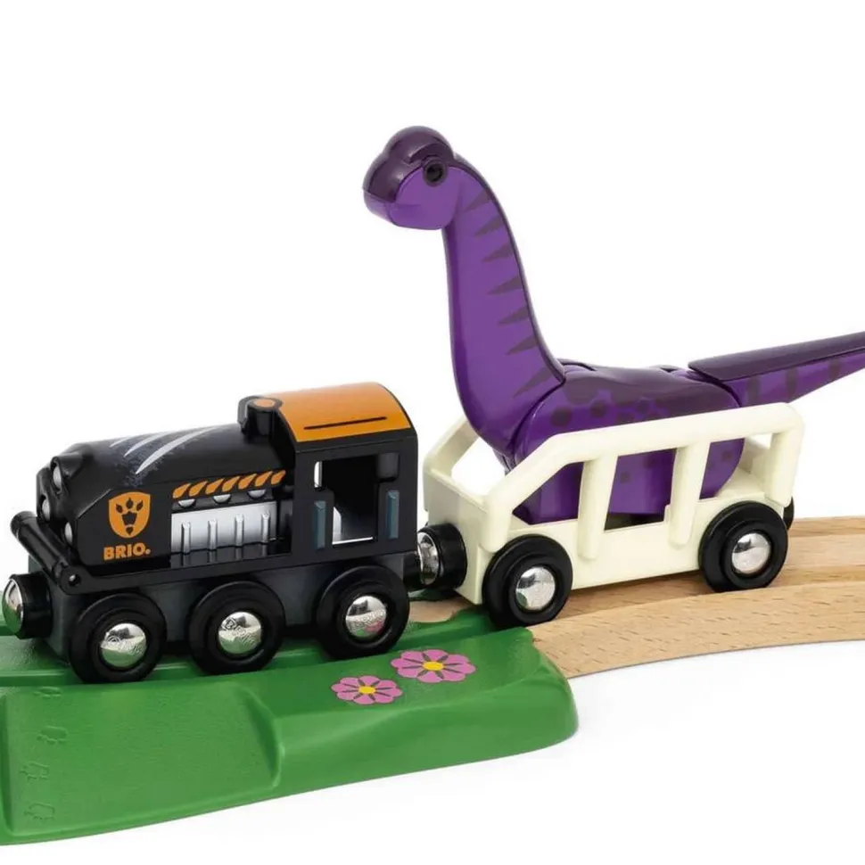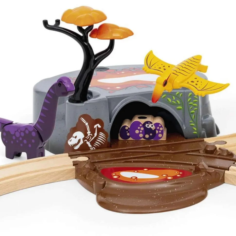 Plongez dans l’univers de la Préhistoire et tombez nez à nez sur les dinosaures avec ce circuit de train thématique de la marque Brio.