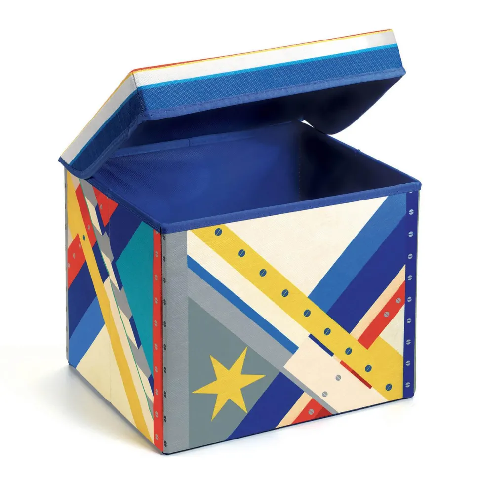 Contenu : 1 boîte de rangement en bois et carton recouverte d’un tissu intissé, imprimé, 1 notice de montage.