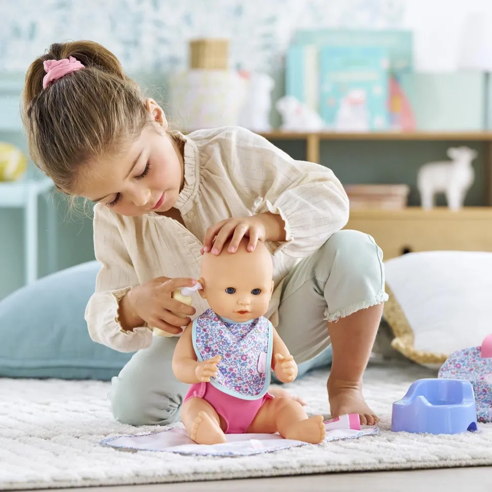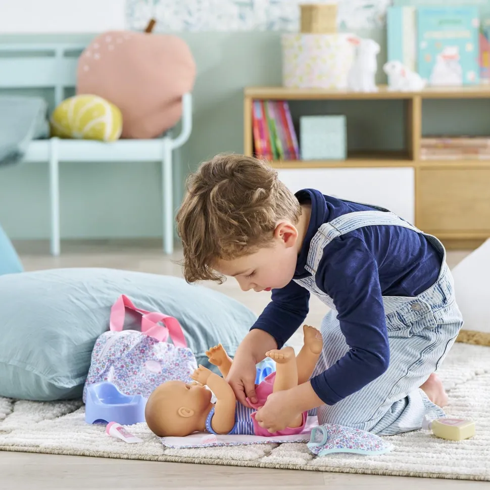 Le Sac à Langer et Accessoires Floral propose tous les accessoires indispensables pour changer son grand poupon : un lait de toilette, un tube de crème, une couche repositionnable en tissu, un bavoir en tissu, un pot, une serviette et un sac bowling zippé pour tout ranger. Les grands poupons disposent d’une collection variée de vêtements et d’accessoires dans la gamme mon grand poupon Corolle pour jouer et faire comme les grands.