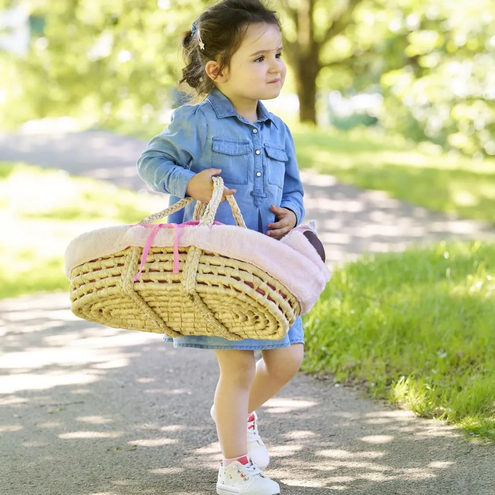 Ce charmant Couffin Tressé Peluche Rose est le cocon moelleux parfait pour installer confortablement son poupon de 36 à 42 cm pour de longs dodos. Pratique, tout doux et léger, il permet aussi d’emmener son poupon préféré prendre l’air. Il est vendu avec un oreiller réversible et une couverture toute douce assortie également réversible.