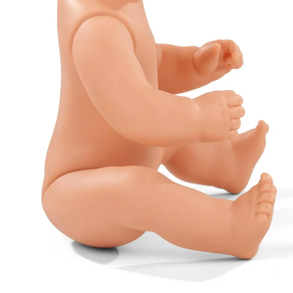 La poupée à un corps dur en vinyl. Elle est 100 % imperméable à l’eau. Elle se nettoie facilement. La poupée mesure 33 cm.