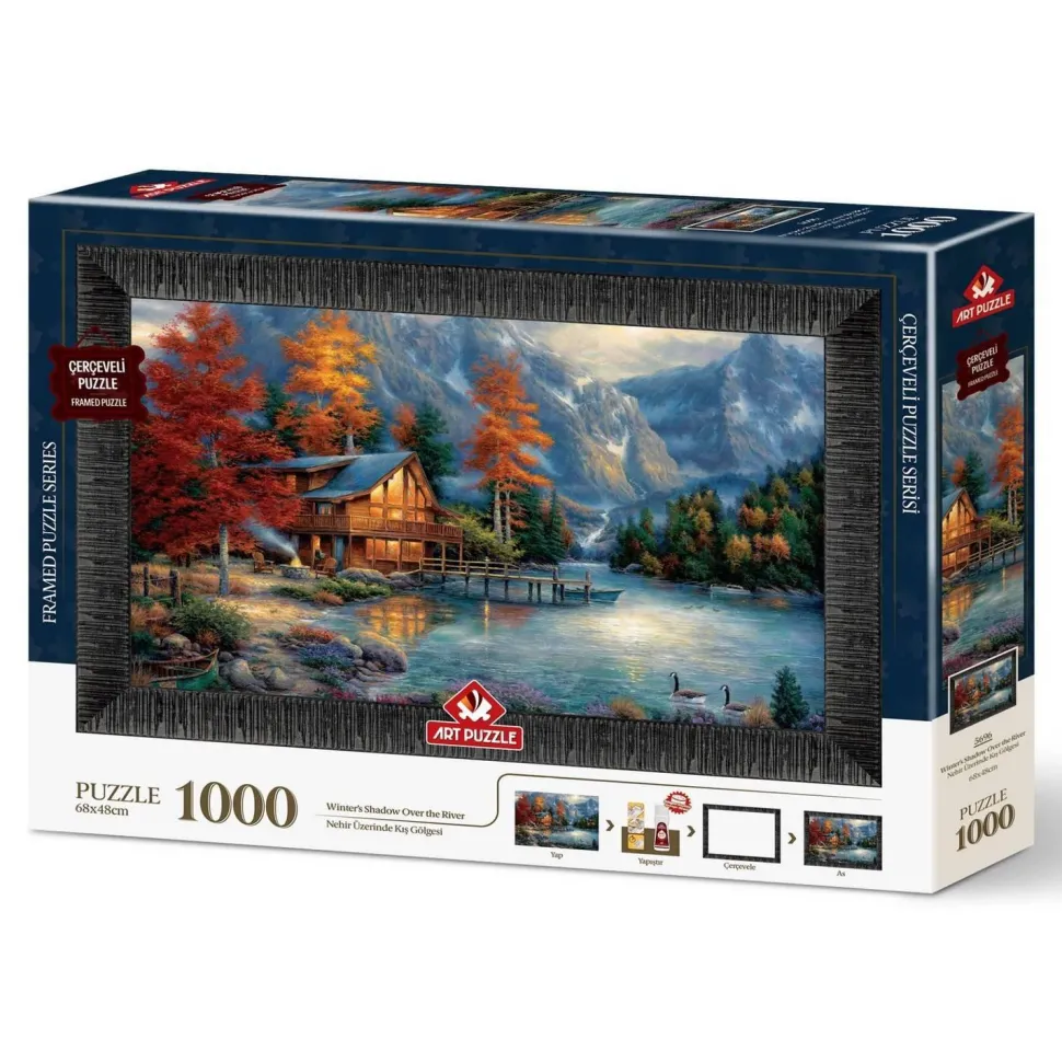 Caractéristiques détaillées : Coffret : Cadre, Colle et Puzzle 1000 pièces : L’Ombre de l’Hiver sur la Rivière