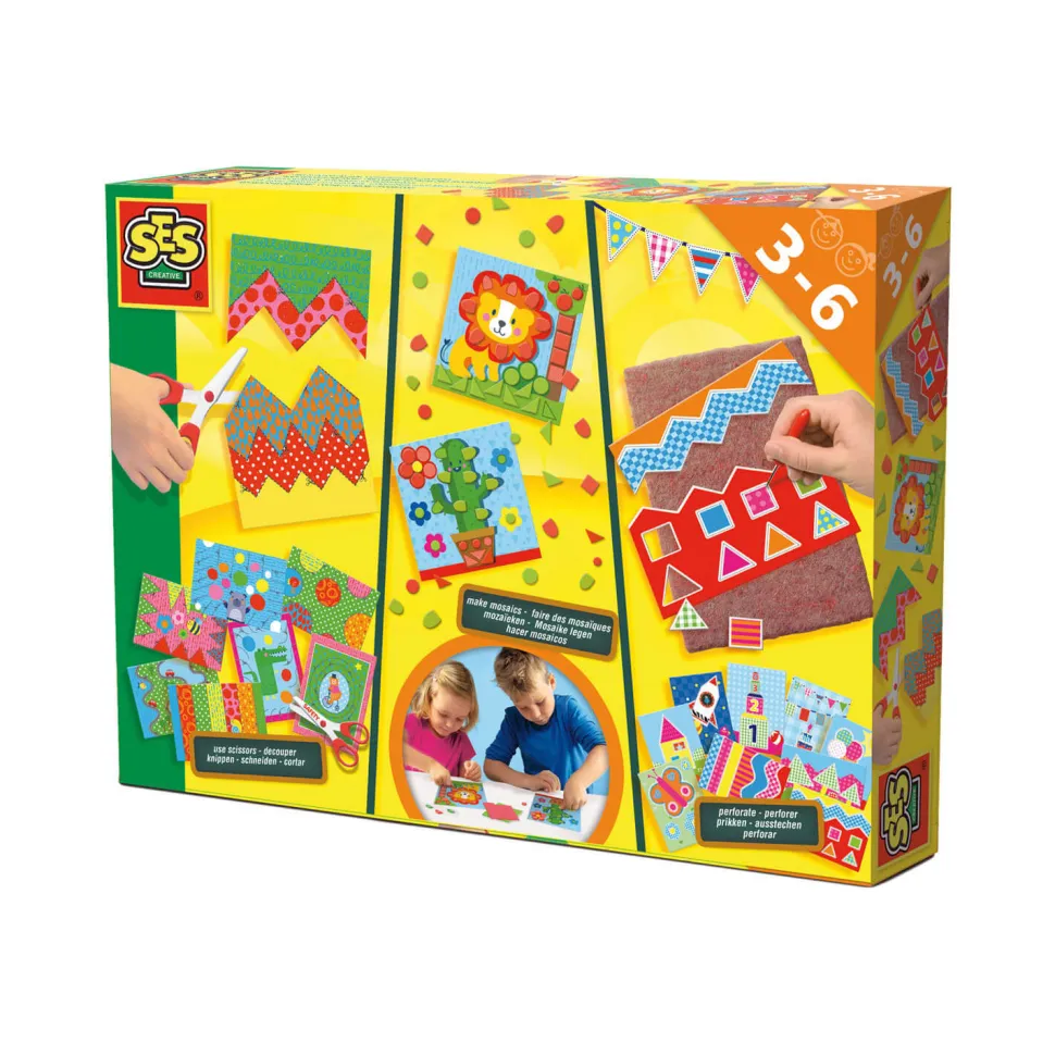 Ne manquez pas ce méga pack pour apprendre à découper, perforer et faire des mosaïques !Découvrez ce coffret aux multiples fonctions : du découpage, de la perforation et des mosaïques avec tout le nécessaire pour obtenir de jolies créations. A l’aide du ciseau, votre enfant devra s’appliquer pour découper sur les traits ou les arrondis. Pour les illustrations du Lion et du cactus, il suffira de choisir la bonne mosaïque pour la placer au bon endroit. Et enfin perforer les 9 images grâce à au stylet perforateur et de sa planche.Ce jeu créatif est un moyen efficace pour développer les capacités de création et le travail manuel de votre enfant.Contenu du coffret : – Une paire de ciseaux- 8 feuilles imprimées à découper- 2 planches mosaïques- 2 illustrations pour coller les mosaïques- Une planche pour la perforation- Un stylet perforation- 9 images à perforerConvient aux enfants de 3 à 6 ans.