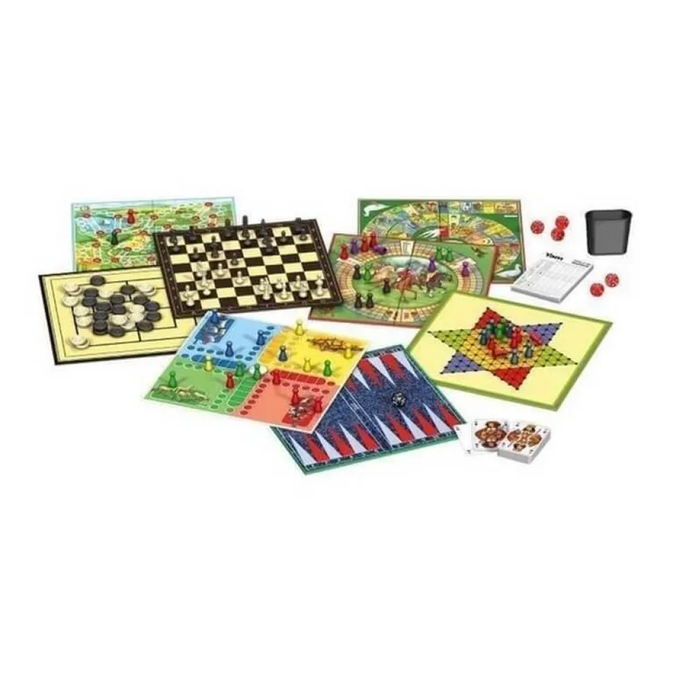 Avec le coffret des Grands classiques Schmidt partez à la découverte du jeu de l’oie, des petits chevaux, du backgammon, de tours de magie, de jeux avec dès et plateaux, des échecs et tant d’autres jeux bien connus ou à découvrir réunis, dans ce coffret exclusif de jeux.