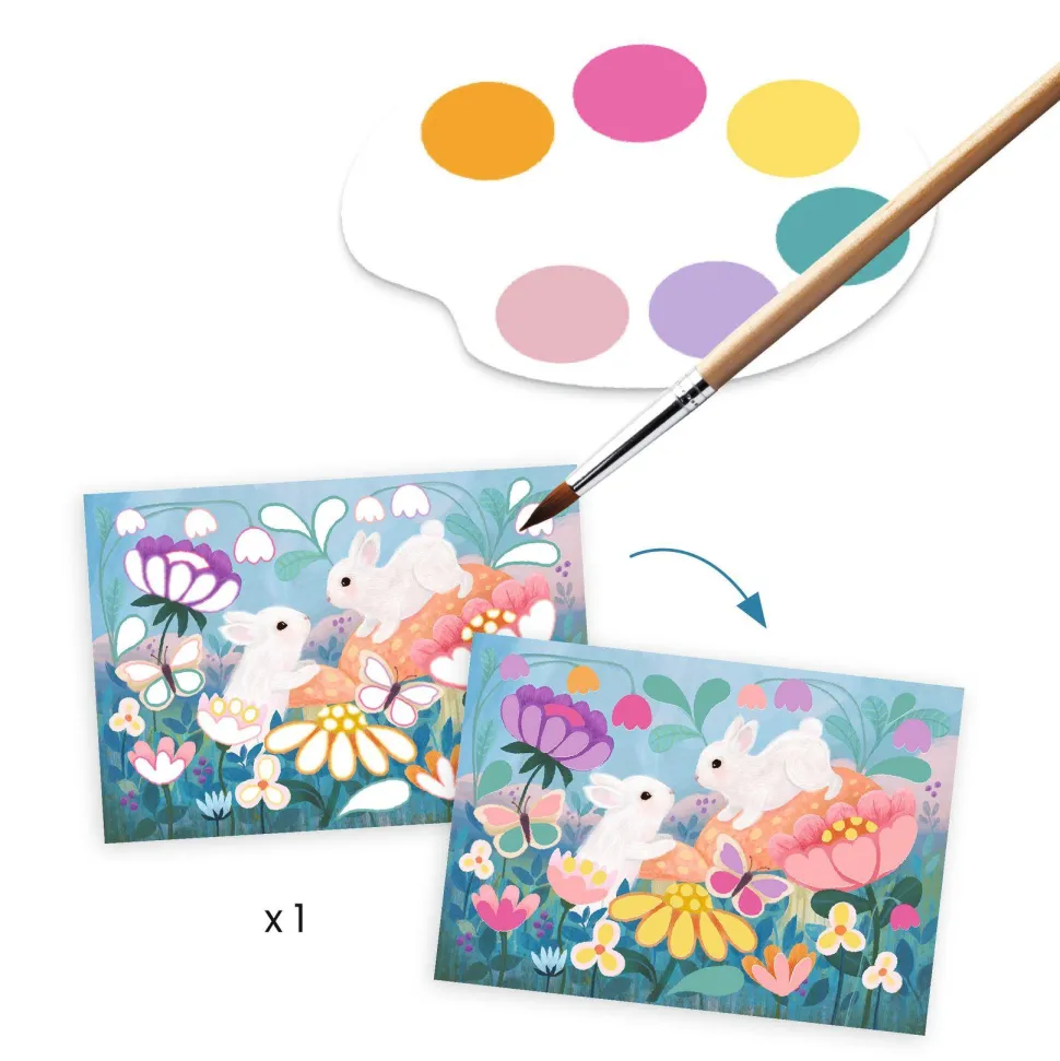 Contenu : Peinture : 1 planche à peindre, 1 palette de 6 pastilles de gouaches et son pinceau.
