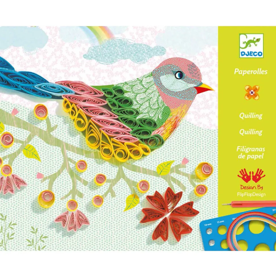 Une activité créative en papier originale sur le thème des saisons !Ce coffret s’adresse aux petits créatifs à partir de 8 ans, qui font autant preuve de minutie que de créativité. L’activité les invite à s’initier à l’art du quilling ou paperolles qui consiste à réaliser de jolies décorations à partir de bandelettes de papier enroulées sur elle-mêmes. L’enfant enroule des bandelettes de papier pour former boucles, cercles et autres navettes puis les colle pour compléter les illustrations fournies et leur donner du volume.Un résultat magnifique que les enfants pourront afficher fièrement dans leur chambre !Contenu :- 2 planches illustrées à compléter, – des bandes de papier coloré, – une planche de gabarits ronds en mousse EVA, – une planche pour encollage en polypropylène, – tubes de colle vinylique, – une goupille de quilling, – une pince – 1 livret explicatif.Dimensions d’une planche : 28 x 21 cm.