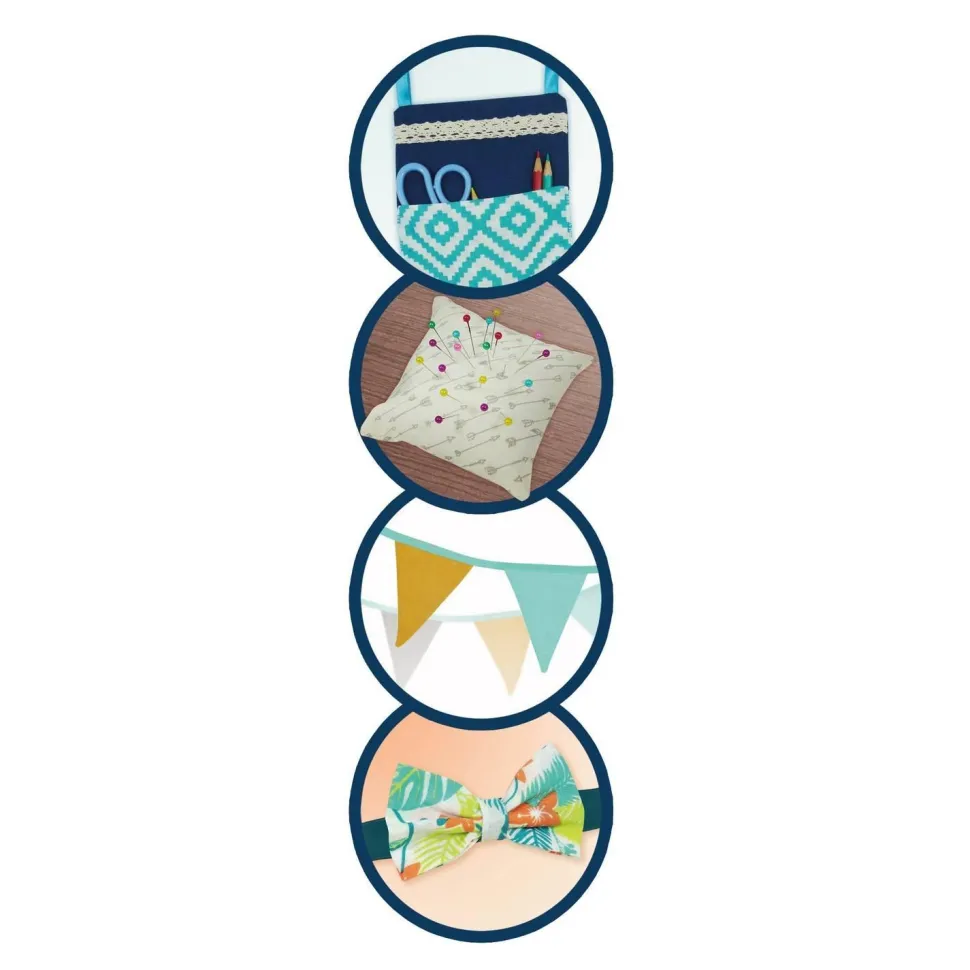 Apprends à coudre 4 projets tendances : guirlande de fanions, coussin à aiguilles, nœud papillon et vide-poche mural !