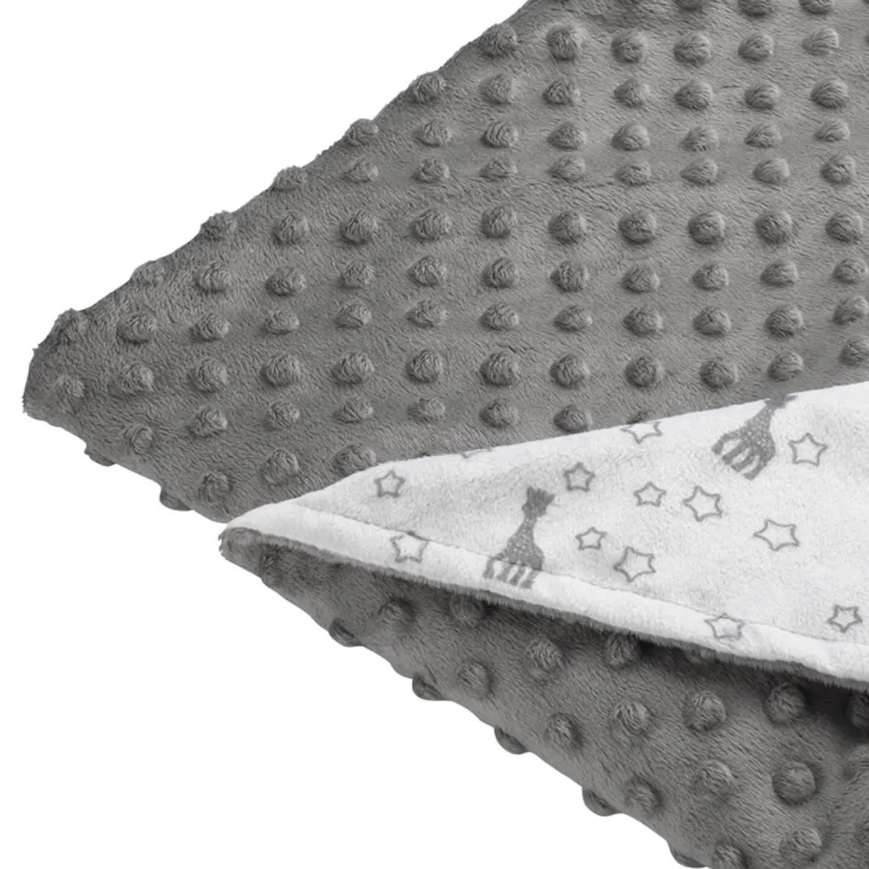 Douillette et tendance, cette couverture Sophie la girafe sera parfaite pour entourer bébé de douceur ! Cette jolie couverture bi-matière, grise et parsemée de motifs d’étoiles et de Sophie la girafe, est extrêmement douce. Enveloppé ou recouvert par cette couverture, bébé se sentira bien au chaud dans un véritable cocon, c’est ce dont il a besoin à sa naissance outre les bras chaleureux de ses parents. Elle est idéale pour protéger bébé du froid lors de ses premières sorties en voiture ou en poussette et pour protéger maman des regards indiscrets lors de l’allaitement.Comprend : – Sophie la girafe, le premier jouet de bébé qui met tous ses sens en éveil. – Une couverture pour le confort de bébéLavable en machine à 30°C. Dimensions : 91 x 78 cm.