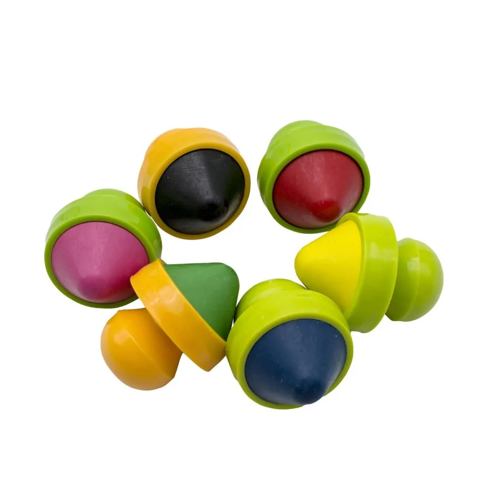 … rouge, jaune, bleu, rose, vert, noir avec manche en plastique. Ces crayons sont spécialement conçus pour les jeunes enfants de 2 ans et plus et possèdent un manche facile à saisir, idéal pour les petites mains. Ils sont livrés dans un pot en plastique avec couvercle et poignée. Des recharges sont disponibles.