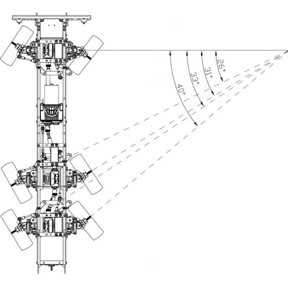 Un servo pignons métal de 17kg de couple minimum est nécessaire à la direction ainsi que la radio-commande dont le nombre de voies dépend des équipements que vous désirez contrôler.