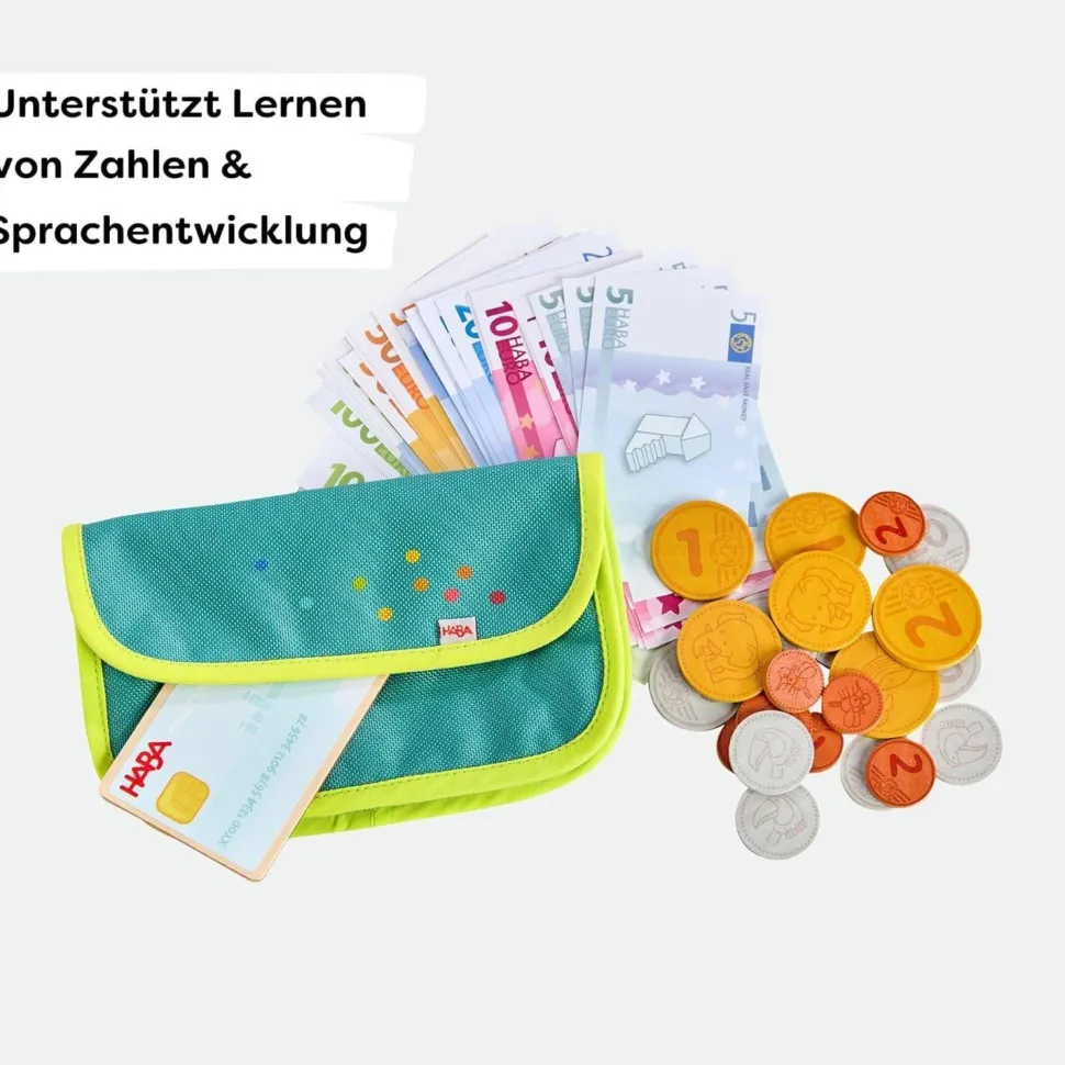 Ensemble complet de jeu d’argent : contient des pièces en bois colorées, des billets, une carte de crédit et un portefeuille élégant. Les enfants apprennent à manipuler l’argent de manière ludique et à reconnaître les chiffres. Un soutien pédagogique précieux pour le développement de la petite enfance. Idéal pour les jeux de rôle imaginatifs pour les enfants, il offre des heures de plaisir. Fabriqué à partir de matériaux de haute qualité, le jouet assure durabilité et sécurité pendant le jeu, parfait pour les petites aventures de shopping. Permet des scénarios d’achat authentiques dans le magasin ou à la maison et stimule l’imagination, le développement de la parole ainsi que l’interaction sociale. Idéal comme idée cadeau ou complément au magasin HABA.