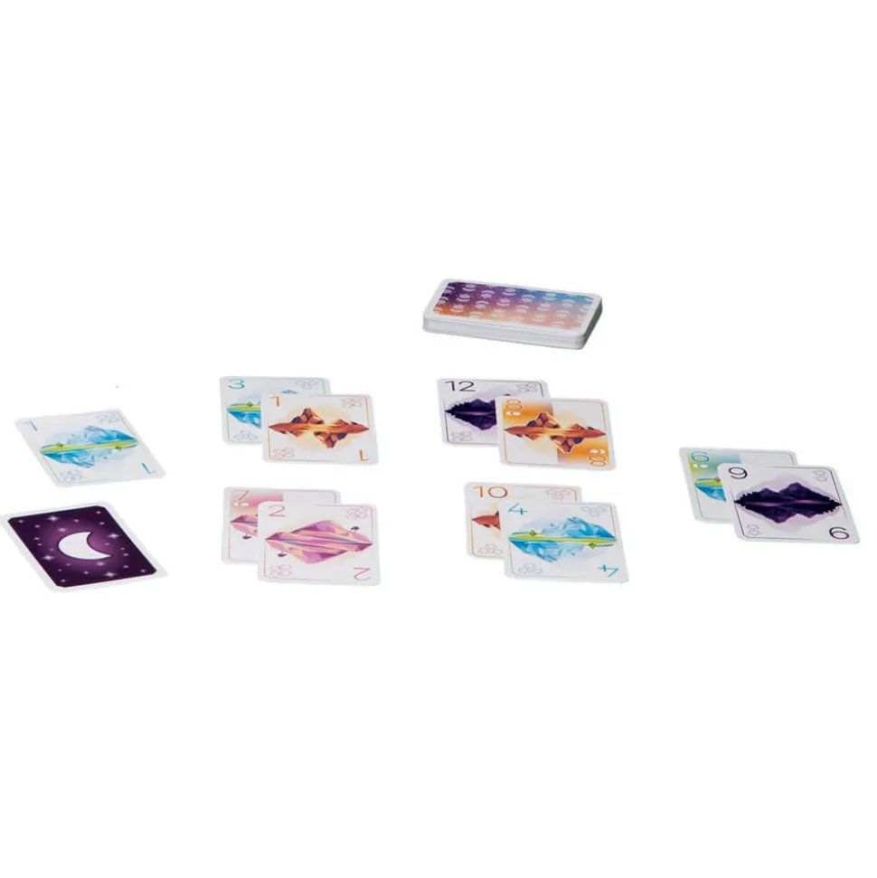 Jour ou nuit ? Selon le moment, tu tenteras d’obtenir la valeur des cartes la plus grande ou la plus petite pour marquer des points. Prends garde, car le soleil et la lune peuvent alterner plusieurs fois par manche… Tu ne pourras gagner les étoiles qu’en estimant au mieux la stratégie de tes adversaires et en retournant la carte du temps au bon moment !