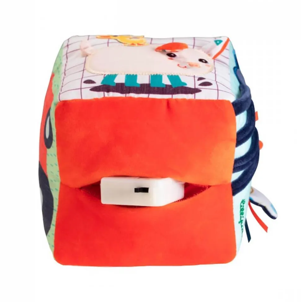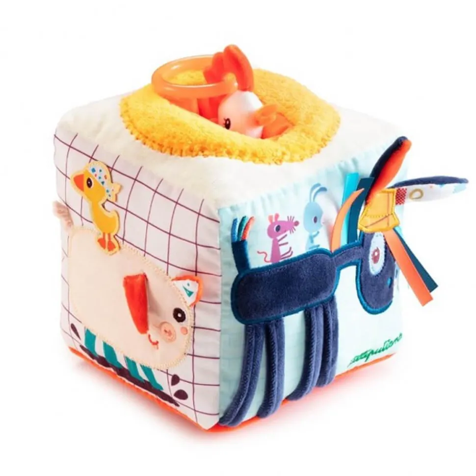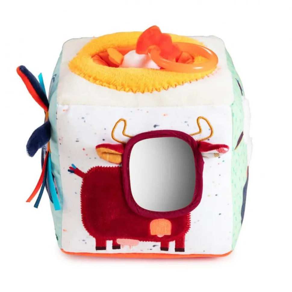 Ce cube d’activités en tissu très coloré rassemble de nombreuses activités et chaque face réserve son lot de surprises. De plus, il comprend de nombreux motifs, couleurs vives et matières, ce qui va titiller les sens de Bébé et va l’éveiller. Il comprend aussi un anneau de dentition et des bruits d’animaux.