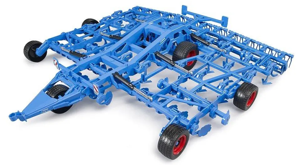 L’agriculture doit constamment s’adapter à de nouveaux défis, tels que la réduction des précipitations et l’augmentation de la sécheresse. Pour relever ce défi, le cultivateur Coralin offre une solution polyvalente pour la gestion en douceur des surfaces agricoles.Cette machine ultramoderne pour le traitement des champs est désormais disponible à l’échelle 1:16 dans l’univers thématique de l’agriculture de BRUDER. Un levier sur le châssis permet de passer du mode conduite au mode champ. Les deux parties latérales, avec ses disques et ses dents dont la conception est parfaitement fidèle à l’original, peuvent être rabattus vers le haut pour le mode conduite. Rabattus vers le bas, ces éléments, ainsi que les rouleaux suiveurs et les dents en fonctionnement, montrent, comme sur l’original, la taille impressionnante de cette machine.Points fortsCarrosserie de véhicule : 2 flèches repliables, Cultivateur à disques à rouleau mobileTrain de roulement : Châssis réglable en hauteur