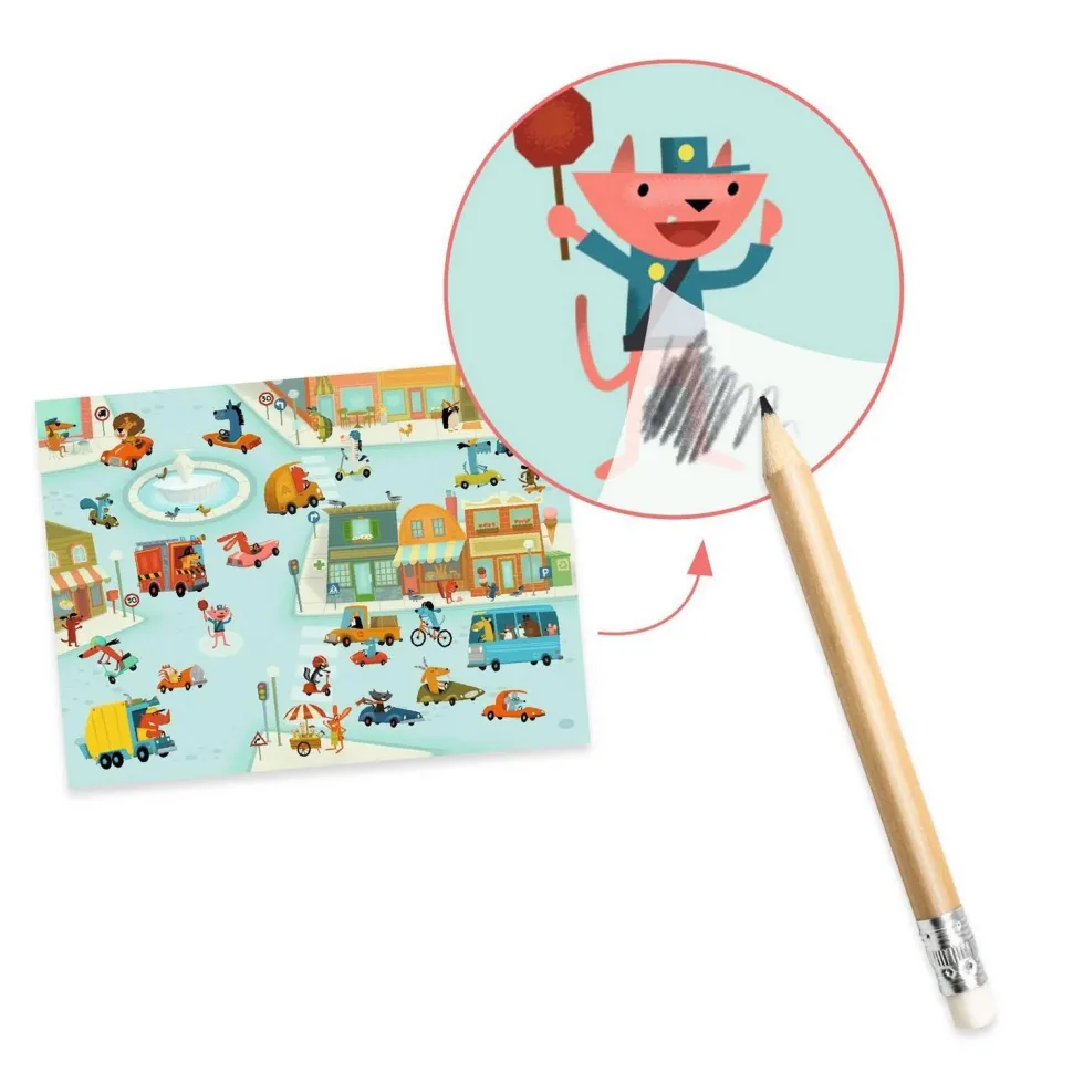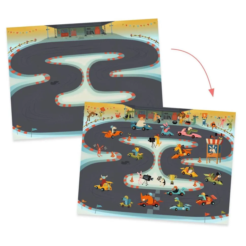 Découvrez la pochette de de décalcomanies : Asphalte de la marque Djeco. Le groupe met à votre disposition une grande pochette contenant une centaine de décalcomanies et 3 grands fonds illustrés à compléter sur le thème des véhicules. Voitures de courses sur un circuit, engins de chantier, 2 roues ou camions divers en pleine ville, l’enfant choisit un décor et positionne dessus les éléments à transférer pour les mettre en scène au fil de son imagination. Retrouvez tous ces animaux personnifiés pleins d’humour. À l’aide d’un crayon, il frotte les images pour les déposer à l’endroit choisi. Une activité facile et amusante pour s’inventer des histoires et créer ses tableaux en toute liberté.